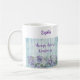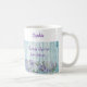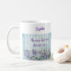 Belle tasse à la palette bleue et violette et design floral. TOUJOURS CHOISIR LA GENTILLESSE est écrit sur la clôture en faux bois dans le script décoratif en lettres au-dessus des fleurs. Personnalisez avec votre nom/nom de destinataire !