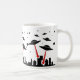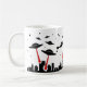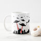 Cette tasse comporte une conception répétée d'UFOs, avec les lasers rouges, envahissant une ville. La couleur d'arrière - plan peut être customisée si désirée.