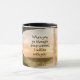 Une tasse à café inspirée d'Écritures représente une belle scène à travers une caverne avec le soleil brillant sur une cascade. Il contient une partie de la Bible Verse Isaïe 43:2, "Quand vous traverserez des eaux profondes, je serai avec vous."