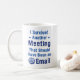 Commencez votre journée avec un rire et un clin d'oeil à la lutte universelle des réunions de travail avec notre drôle de tasse de nouveauté! Avec l'expression "J'ai survécu à une autre réunion qui aurait dû être un courriel", cette tasse reflète parfaitement la frustration que nous ressentons tous lorsque le temps est perdu dans des réunions inutiles.