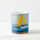 "J'ai vu trois bateaux" Paysage marin. Un paysage marin coloré et reposant dans le style d'une aquarelle. Avec des voiliers dans une mer agitée. Couleurs bleu et jaune vifs.