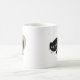 Illustration d'un chat noir regardant à travers un coeur d'amour, De l'autre côté le chat est allongé. Ce design utilise la création de zones, donc si vous voulez changer la couleur blanche arrière - plan vous devrez aussi changer les deux carrés sous les pattes de chats.