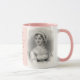 Une tasse de Jane Austen avec une liste de ses romans, également comportant une gravure de elle et d'un plat de mode de régence.