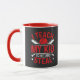 Une mug de baseball humoristique avec un texte rouge et blanc dit I Teach My Kid to Hit and Steal.