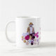 Cette tasse lunatique et artistique comporte un jardinier mystique de fleur perdu dans ses dahlias. Il est habillé aux nuances du brun, or, blanc et se bronze et des sports un casquette pour l'ombre, une barbe et une moustache. Les fleurs sont magenta, roses, jaunes, lavande et pourpre et forment un motif abstrait tourbillonnant autour de lui. Merveilleux pour le jour de la terre ou quand vous voulez penser le vert. Le texte, qui est une citation de Ralph Waldo Emerson, lit : La terre rit en fleurs. Elle peut être customisée ou enlevée.