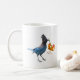 Un pot bleu Steller's tient une seule fleur de lys tigre sur cette tasse d'oiseau distique.