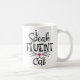 Amusante tasse à café humoristique pour les amoureux de les chats, avec la légende Je parle couramment Chat dans la typographie moderne en noir sur un arrière - plan blanc décoré avec le nez du chat, la bouche et les chuchotements.
