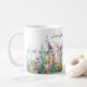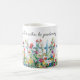 De belles fleurs d'aquarelle le long d'une clôture bordent cette tasse. Pour la décoration saisonnière de la maison, les tasses sont un changement facile de l'hiver douillet à une esthétique printanière colorée. L'IA a aidé graphisme acheté avec licence commerciale. Oeuvre : MokoDE