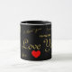 Élégant Je t'aime écrit en or avec un coeur rouge. Les clients ont la possibilité de déplacer ou de redimensionner les mots. L'arrière - plan noir peut être modifié dans les options de conception. par celeste@kkhoncepts.com