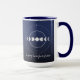 Elégant art de la phase de lune mettant en vedette les différentes étapes de la lune, y compris le croissant, le gibbbous, le quart et plein. La toile de fond est composée d'un bleu foncé et commence par un motif géométrique. Donnez en cadeau à votre ami sorcier, amant céleste ou enfant lune.