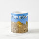 Jerusalem's holiest site in Judaism is the Western Wall. The religious significance and the setting sun surely makes it the city of gold- which the title is spelled in Hebrew. Also shown is the Dome of the Rock, another holy site for Muslims. This mug shows the beauty of this city at this special time.