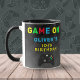 Jeu Sur Contrôleur Vidéo Jeu Anniversaire Mug. Contrôleur de jeu, nom personnalisé et âge sur un motif sombre.