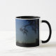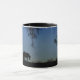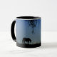 Jolie tasse de café avec un cheval et ciel nocturne avec étoiles et chênes.