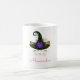 Cute Girly Girl's Halloween Kitty ou Kitten Black Casquette Witch Coffee Cup pour un cadeau d'octobre Anniversaire. Vous pouvez customiser ce café Amoureux des chats ou cette tasse de thé pour y inclure votre signature de script de nom monogrammé. Veuillez contacter le concepteur pour les articles correspondants.