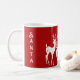Des rennes blancs et artistiques attendent l'appel de Père Noël. Citation personnalisée, Message de Noël Mug avec des illustrations de rennes blancs de Noël sur un arrière - plan rouge profond. Cette mignonne tasse à café livre le message et l'esprit de Noël. Utilisez les espaces réservés TEXTE pour customiser la carte en cliquant sur le bouton Personnaliser. Éditer à l'aide de l'outil de conception pour votre choix de style et de format de police. Si vous aimez mes oeuvres d'art, visitez le magasin 'ChristmasGallery' pour plus de ces produits. Lien : https://www.zazzle.com/store/christmasgallery