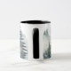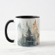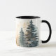 Mignonne éco-couleur verte pinède brumeuse mug de Noël. Célébrez la saison des fêtes magiques et festives avec ce magnifique design personnalisé de tasse de vacances avec aquarelle forêt de pins bruns dans le vert chasseur et gris. Personnalisez cette tasse festive avec un prénom ou un autre texte personnalisé. Faites un cadeau de vacances amusant pour n'importe quelle fille, enfants, petits-enfants, famille et amis!