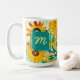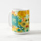 Coupe café en plastique blanc jaune et turquoise. Ajoutez des initiales dans la zone personnalisée.