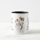 Café, tasse à thé avec citation inspirante Écriture représente un ton terre aquarelle floral avec des fleurs roses et grises et le feuillage. Il comporte une partie d'une puissante Verse biblique tirée de Josué 1 9, "Soyez forts, braves, téméraires. Tu n'es jamais seul."