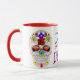 Le Jour des Morts est célébré dans le centre et le sud du Mexique les 1er et 2 novembre. C'est l'heure d'honorer les amoureux décédés. Le crâne que vous voyez sur cette mug s'appelle une mug de sucre. Il représente les crânes de sucre qui représentent les morts.