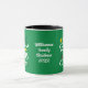 Personalized JOY IN JESUS Christian Christmas Mug in GREEN with bold black script typography and holly. Ideal personalized Family Mug during the festive season, with a strong Christmas message of joy in Jesus all year round. You can PERSONALIZE with your family or group name and year. Matching gifts available. Other colors available.