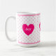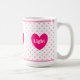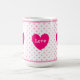 Belle tasse avec coeur, pois roses et joie personnalisée, amour, texte clair.