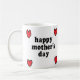 Joyeux texte noir de la fête des mères avec des coeurs rouges sur arrière - plan blanc.