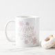 Ce café de Noël ou tasse à thé est une façon parfaite d'envoyer des salutations saisonnières et des voeux de vacances à votre famille et vos amis. Le salut Merry & Bright classique sur la tasse est écrit dans une élégante police de script de calligraphie vintage et poussiéreuse couleur rose rose vif, et est entouré de mignons flocons de neige gelés dans la même couleur. Le design est simple et élégant, mais aussi tendance et accrocheur.