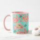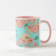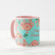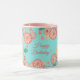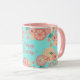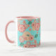 Joyeux Anniversaire - Fleurs de Pêche Printemps Jardin Main Motif, Décoration, style Boho-chic. Ornement Décoratif Floral. Elégante pivoine, sakuras fleuris, lanternes et fleurs du printemps, vol paon, or, turquoise, couleur rose, turquoise vintage arrière - plan avec Fortune symbole de chance, art. Design tendance avec modèle de texte, pour Accueil > Cuisine et restauration > Boissons > Mugs & Tasses, Anniversaire, Nouvel An chinois. Cadeau de vacances, décoration. Personnaliser Modèle pour Personnalisé en ajoutant vos souhaits Texte, Date et Noms