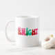 Soyez réveillé et prêt à célébrer Noël avec cette tasse amusante et colorée. Avec le texte "Joyeux et lumineux" dans les tonalités ultra vives de rose, rouge, vert et aqua dans un style de bulle rétro de typographie.