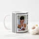 Première idée de cadeau de Noël unique pour le nouveau père - Une tasse de café photo moderne avec une grille de collage créée avec 5 photos et message sur un bloc de couleur gris branché.