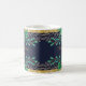 "Joyeux Script de Noël Marine or rouge aquarelle café Mug." "Joyeux Noël" est en calligraphie manuscrite avec votre nom de famille ou message ci-dessous. Les feuilles, le feuillage et les baies peints à la main sont associés à des éléments de parties scintillant d'or dessinés à la main sur un arrière - plan bleu marine profond. Art par Audrey Jeanne Roberts, artiste titulaire d'une licence internationale, copyright.