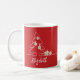 Cette tasse de Noël rouge présente un croquis d'arbre de Noël avec des ornements et des cadeaux en or. Parfait pour ajouter à votre décor de vacances cuisine ou donner en cadeau. CORRESPONDANCE d'objets dans notre collection.
