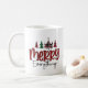 Cette tasse à café festive présente l'image textuelle "Joyeux Tout" avec des arbres de Noël dans le design sublimé et personnalisée le long du côté avec votre nom. Parfait pour cette tasse de café matinal de vacances.