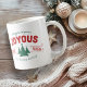 Doté d'arbres à feuillage persistant surmontés d'étoiles et d'un design typographique moderne en rouge et vert traditionnel, ce design amusant de tasse à café est une façon joyeuse de répandre vos voeux de vacances. Ajoutez votre nom pour compléter le message fourni 'Je vous souhaite et vous souhaite une belle saison des Fêtes'. Recherchez ID580 pour voir d'autres produits avec cette conception.