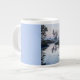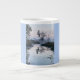 L'image sur le devant de cette tasse représente un torrent de campagne un matin brumeux.