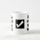 Le thème de la Mug à café Juste un humain pas un robot Typographie noir et blanc est la technologie et la sécurité sur Internet. Le design comporte une police audacieuse, moderne et graphique, à gauche et à l'avant, ainsi qu'une case et une coche au centre.
