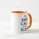 Keep Calm And Eat Sushi. This funny sushi lover accessory is a great sushi lover gift for a man, woman, girls, boys, teens & kids who love to eat sushi & sashimi at Japanese restaurants, and love wasabi, ginger and soy sauce. If you love Japanese food, and eating tuna maki rolls and nigiri sushi with vinegared rice, this sushi lover accessory is for you!