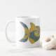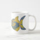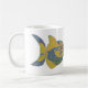 Fish, blue and yellow striped pattern. Two Trigger Fish facing each other, seeming to kiss. From original silk painting by Susan Lilly. (Lilikai)