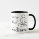 Mug with figure in meditation pose and the phrase "Know God, Meditate!"