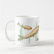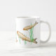 Ceci a simplement conçu des caractéristiques de tasse délicatement colorées oranges et la natation blanche de poissons de koi par une mer d'herbe.