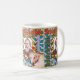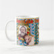 Les chiens adorent la musique classique. Dans certains abris pour animaux, les chiens dorment tous les soirs au son apaisant de la musique classique. Quand la musique commence, ils arrêtent tous d'aboyer et se contentent de doux rêves. Les créations de cette série "Chiens aiment la musique classique" célèbrent le lien intuitif entre les chiens et cette merveilleuse musique. L'oeuvre originale de ZoeSPEAK sur ce Mug présente un portrait du compositeur Johannes Brahms. Le portrait est dans un cadre doré orné, sur un papier peint arrière - plan de bleu clair avec des rayures roses et des moutons dansants. En face est une photo d'un chien, commentant (en anglais et en français), et pointant avec des flèches rouges vers le compositeur. Le texte dit "Berceuse de Brahms".