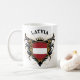 Conception fraîche de crête avec le drapeau national de couleurs et de la légende de la Lettonie : La Lettonie. Grand cadeau letton de fierté.