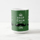 La moustache verte et noire sur le calme Keep et continuent le slogan avec les graphiques britanniques originaux d'affiche de temps de guerre sur une tasse. Elke Clarke ©2012. Une tasse drôle d'humour fait un grand cadeau de motivation pour des amants de moustache et des porteurs de moustache semblables. Pour d'autres couleurs contactez le propriétaire de magasin.