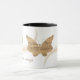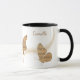 Des images de papillons silhouettes sont remplies de feuilles de musique vintages sur cette jolie tasse. En bas, le texte est marron doré : "La musique a des ailes", et votre nom personnalisé est de l'autre côté. Tout est placé sur un arrière - plan blanc, avec une étoile dorée subtile tourbillonnant parmi les images de papillon. Parfait pour le musicien, le professeur de musique ou toute personne qui aime la musique !