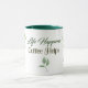 "Life Happens COFFEE HELPS" déclare que c'est vrai pour la tasse à vie! Le texte est en vert foncé et marron, avec des feuilles verts et bleus doux de chaque côté. Une branche foliaire supplémentaire se trouve directement en dessous du lettrage.