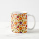 Citrouilles orange, raisins violets, pommes rouges, noix brunes et feuilles d'automne colorées font un beau thème de récolte sur cette tasse pour Thanksgiving.