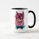 Caractéristiques de conception ce qu'un portrait mignon d'aquarelle d'un lama dans l'aquarelle éclabousse du rose et du bleu.