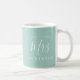 Le futur Mme fiançailles cadeau tasse à café, un design chic, moderne et simple avec le texte mrs en blanc élégant script sur un arrière - plan bleu ciel. Ajoutez simplement votre nom et votre adresse. Conçu exclusivement pour vous par Happy Dolphin Studio. Si vous avez besoin d'aide ou de produits correspondants, veuillez nous contacter à happydolphinstudio@outlook.com . Nous sommes heureux de vous aider à faire de votre fête de fiançailles un événement merveilleux!