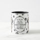 Un adorable Cairn Terrier Dog se dresse sur les deux côtés de cette tasse. Le texte entre les deux images dit "Le 8ème jour, Dieu a créé le TERRIER CAIRE et l'a appelé TRÈS BIEN". Les images de chien et la bannière blanche ovale contenant les champs de texte sont placées sur un arrière - plan blanc avec des empreintes de pattes noirs.