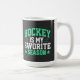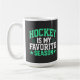 Tasse de hockey avec texte vert et blanc sur un arrière - plan noir dit Hockey is My Favori Season!